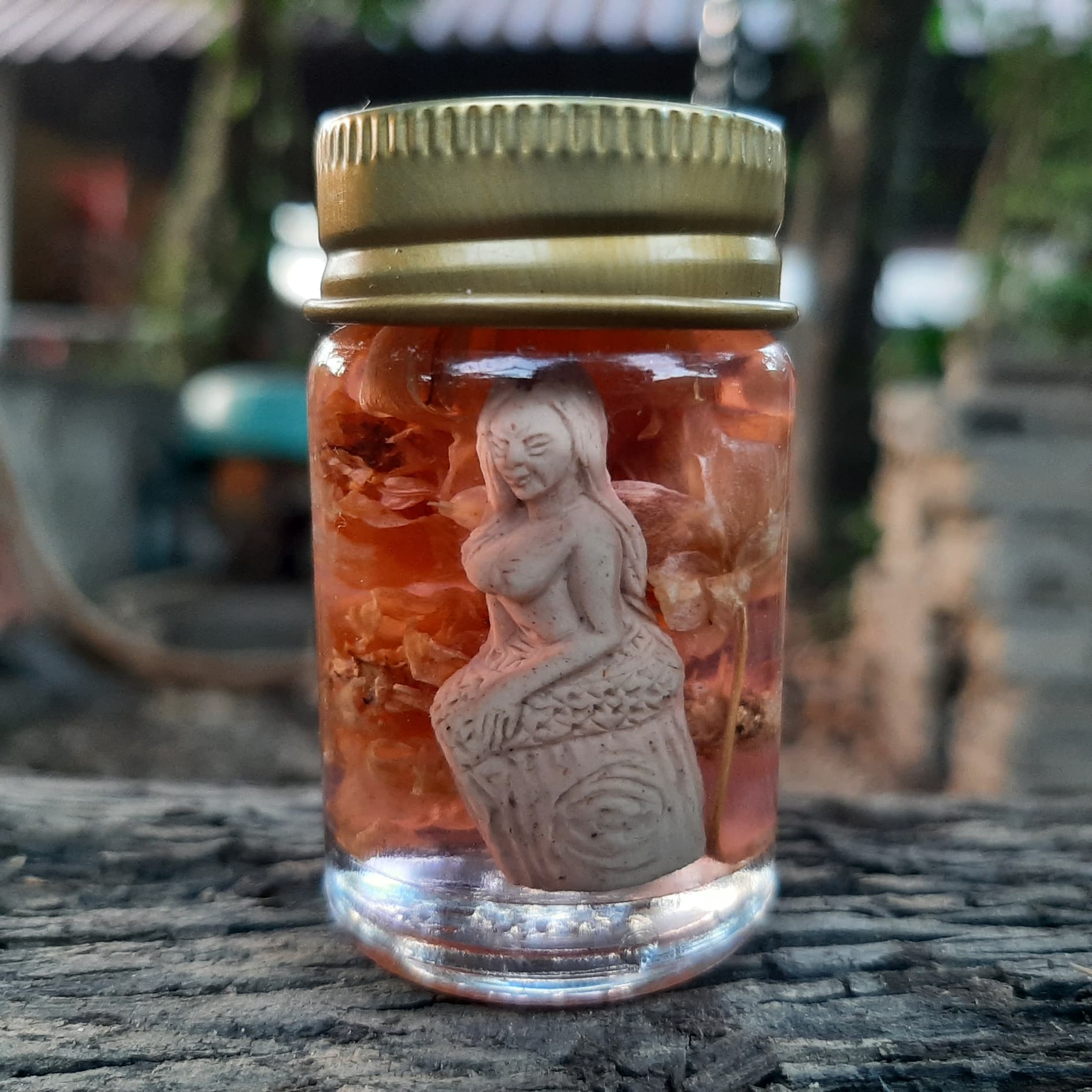 สร้างจาก ว่านทางเสน่ห์นานาชนิด น้ำมันทางเสน่ห์สายล่างหลายชนิด เน้นปลุกเสกมนต์สายล่าง ราคะ กามารมณ์ เป็นสายขาว ไม่มีอันตราย เป็นวิชาเสน่ห์ล้านนาเป็นหลัก